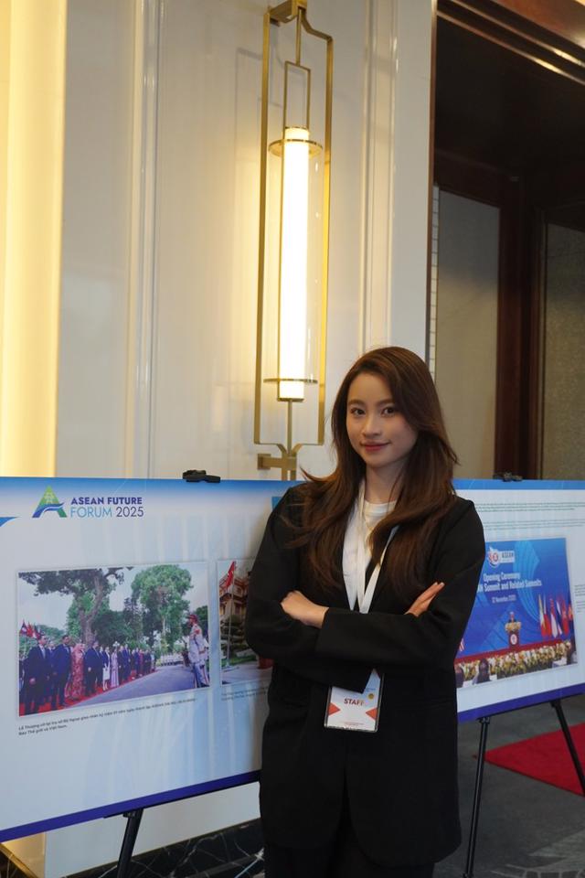 Ngoài ra, trong ngày 25-26/2, nữ sinh có cơ hội trở thành Tình nguyện viên tại Diễn đàn Tương Lai ASEAN 2025 (ASEAN Future Forum). Đây là một trải nghiệm đáng nhớ khi cô làm việc cùng các thầy cô, anh chị Ban tổ chức đầy tâm huyết từ Viện Chiến lược, Học viện Ngoại giao và trực tiếp tham gia vào các công tác chuẩn bị, hỗ trợ điều phối chỗ ngồi và tham dự phiên họp giữa các lãnh đạo cấp cao, đại sứ cùng các đại biểu trong nước và quốc tế.
