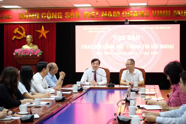 Tọa đàm có sự đồng chủ trì của đồng chí Nguyễn Đình Lợi, Ủy viên ban Thường vụ Tỉnh ủy, Trưởng ban Tuyên giáo và Dân vận Tỉnh ủy Bắc Ninh cùng PGS.TS. Hà Anh Tuấn, Phó Bí thư Chi bộ các khoa chuyên ngành, Phó Trưởng Ban đào tạo, Quyền Trưởng khoa Chính trị quốc tế và Ngoại giao. Chương trình có sự tham gia của các đồng chí lãnh đạo Ban và nhiều đại biểu đại diện các đơn vị chức năng. Về phía Chi bộ Các khoa chuyên ngành, chương trình có sự góp mặt của đông đảo cán bộ, giảng viên của Học viện Ngoại giao.