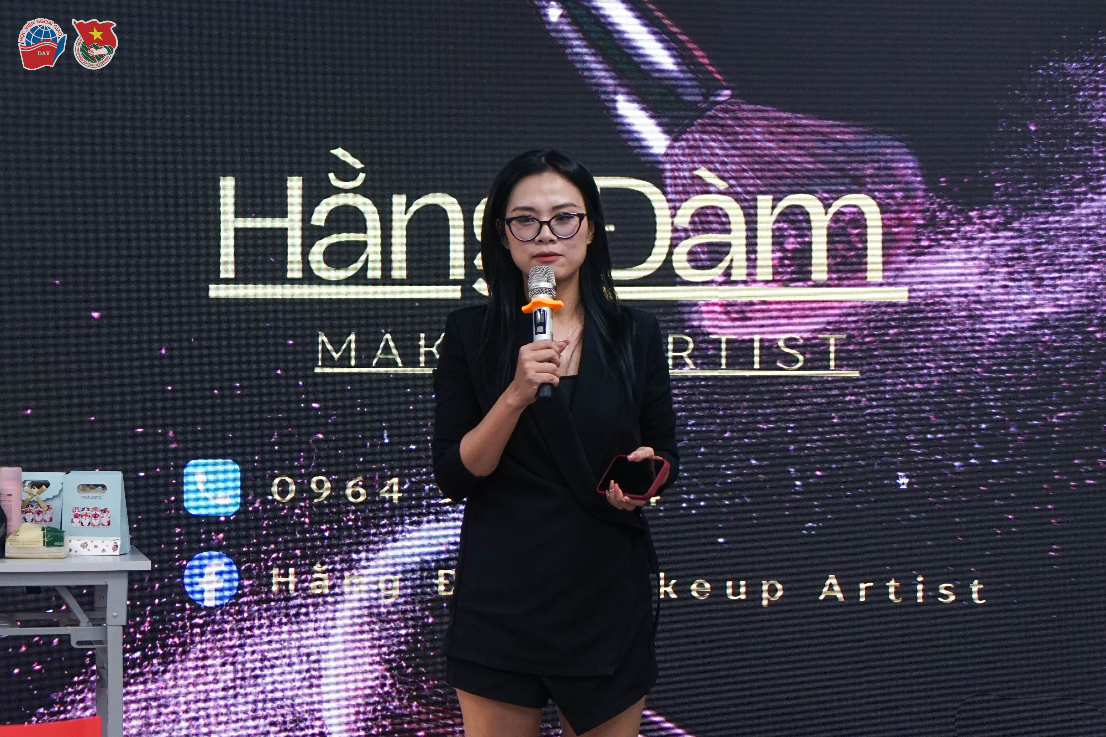 Sau phần Lễ kỷ niệm ngày 8/3, chương trình được tiếp nối với Workshop học trang điểm do chuyên gia Hằng Đàm (Hằng Đàm Makeup Artist) hướng dẫn và một số nhân viên hỗ trợ thực hành. Tại workshop, chuyên gia đã chia sẻ nhiều kiến thức và kỹ năng liên quan đến trang điểm cá nhân phù hợp với môi trường công sở, cũng như những mẹo nhỏ giúp duy trì hình ảnh chuyên nghiệp và tự tin trong các hoạt động đối ngoại. Không khí buổi workshop diễn ra sôi nổi với nhiều phần trao đổi, đặt câu hỏi và thực hành trực tiếp, mang lại những trải nghiệm thú vị và thiết thực cho các nữ cán bộ, giảng viên của Học viện.