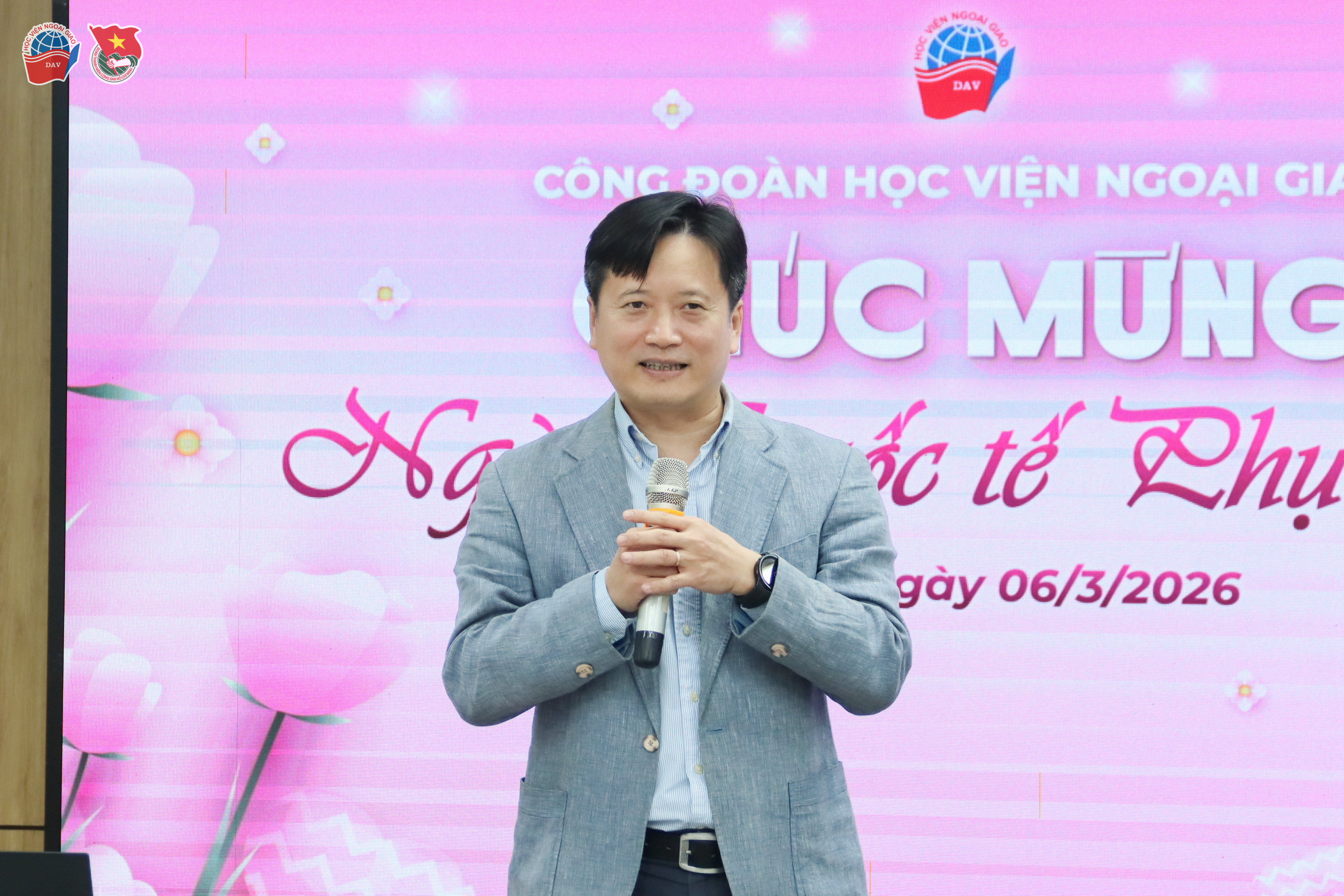 Chương trình chào mừng Ngày Quốc tế Phụ nữ 8/3 do Công đoàn Học viện tổ chức khép lại trong không khí ấm áp, vui tươi và tràn đầy ý nghĩa. Chương trình không chỉ là dịp để tri ân và tôn vinh những đóng góp của phụ nữ, mà còn thể hiện sự quan tâm, trân trọng của Lãnh đạo và Công đoàn Học viện đối với vai trò và vị thế của phụ nữ trong công việc giảng dạy, nghiên cứu và bồi dưỡng cán bộ đối ngoại. Qua đó, tiếp tục khích lệ nữ cán bộ, giảng viên và người lao động phát huy năng lực, đóng góp tích cực cho sự phát triển bền vững của DAV trong thời gian tới.