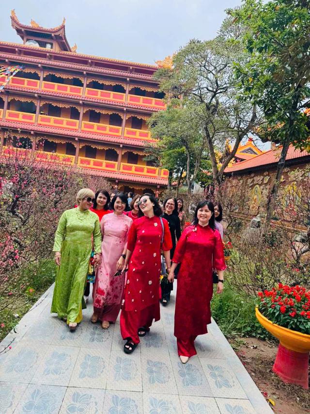 Trong hành trình du xuân, đoàn đã đến thăm và chiêm bái tại Chùa Thắng Nghiêm Quốc Tự, một trong những ngôi chùa có quy mô ấn tượng trong khu vực. Tại đây, các đoàn viên đã thành tâm dâng hương, lễ Phật, cầu chúc một năm mới bình an, thuận lợi; đồng thời lưu lại những khoảnh khắc rạng rỡ đầu xuân trong không gian thanh tịnh, trang nghiêm.