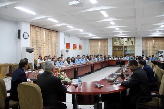 Buổi tọa đàm có sự tham dự của sinh viên Khoa CTQT và nhiều nghiên cứu viên từ Viện Biển Đông. (ảnh: HTQT)