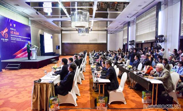 The workshop, held in the form of direct and online discussion, was attended by more than 100 delegates from ministries, branches, research agencies, friendship associations and the business community of the two countries, along with diplomatic representatives of ASEAN countries and ASEAN's dialogue partners in Hanoi.