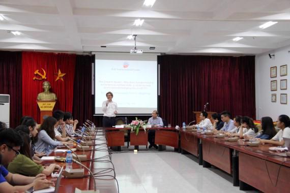 Attending the talk is Deputy Director of the Diplomatic Academy of Vietnam, Dr. Le Hai Binh, Dr. Nguyen Tuan Viet, Head of International politics and Diplomatic studies Faculty, 3rd year & 4th year students, International politics and Diplomatic studies Faculty and the Academy’s researchers.