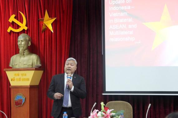 After completing his presentation, the Ambassador answered many questions from students and staff about the prospect of strengthening the Indonesia-Vietnam bilateral relationship, increasing the effectiveness of cooperation between the two countries within ASEAN, as well as in other multilateral forums.