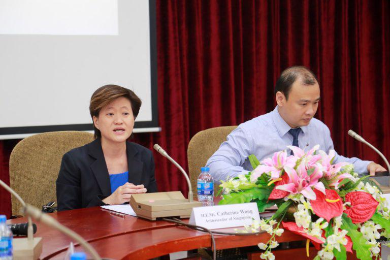 On May 9th, 2018, within the framework of the 2018 Ambassadors Forum, Singaporean Ambassador Catherine Wong had a talk at the Diplomatic Academy of Vietnam on the topic: "Singapore and the role of ASEAN Chairman in 2018". The talk was attended by Canadian Ambassador to Vietnam Ping Kitnikone, Filipino Ambassador to Vietnam Noel Eugene Eusebio M. Servigon, Ms. Doan Hai Hong, Provisional Representative of the Chinese Embassy in Vietnam, representatives of 8 Diplomatic delegations in Hanoi (Australia, Brunei, Indonesia, Japan, Malaysia, Thailand, Russia, and Sweden), representatives of the ASEAN Department and numerous researchers, lecturers and students of the Diplomatic Academy of Vietnam.