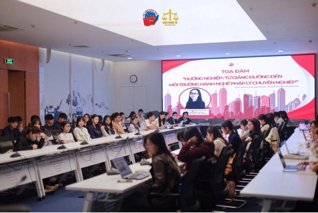 During the seminar, Ms. Lương shared her career journey, from working as a legal assistant to assuming a managerial role in corporate legal compliance. She provided students with practical perspectives on the daily realities of working in a law firm and in corporate legal departments, highlighting the skills, competencies, and mindset that employers seek in law graduates.