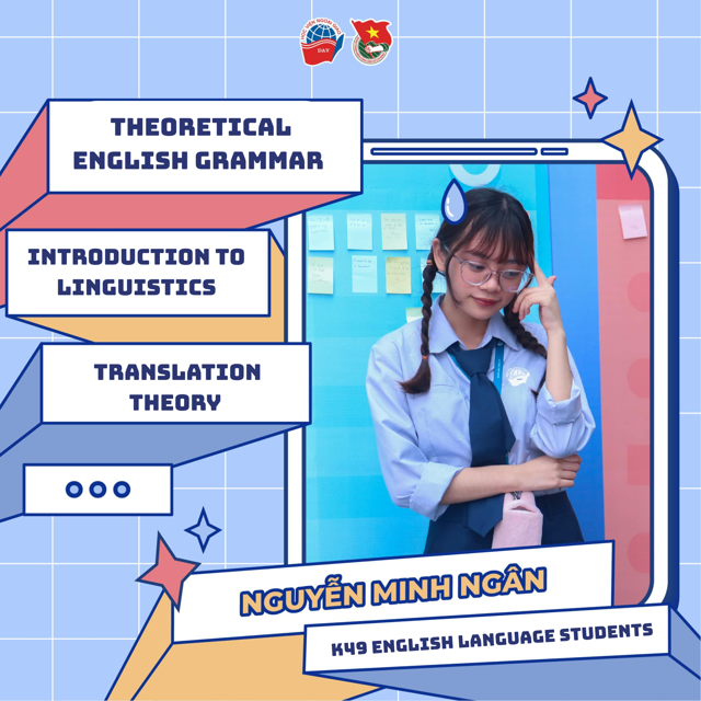 “Theoretical English Grammar, Translation Theory, and Introduction to Linguistics are among the prominent subjects in the English Language major. Through these specialized courses, we are provided with in-depth training on the foundational knowledge of the field. In particular, my peers and I also have the opportunity to learn and cultivate knowledge regarding political and foreign affairs, alongside the essential skills of a translator and interpreter.