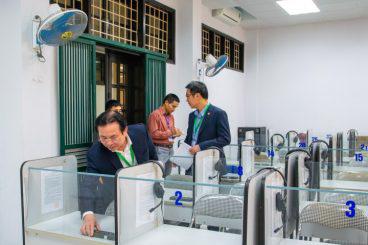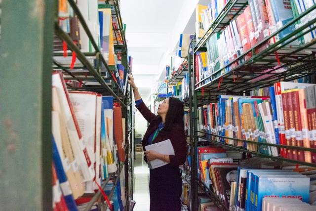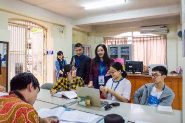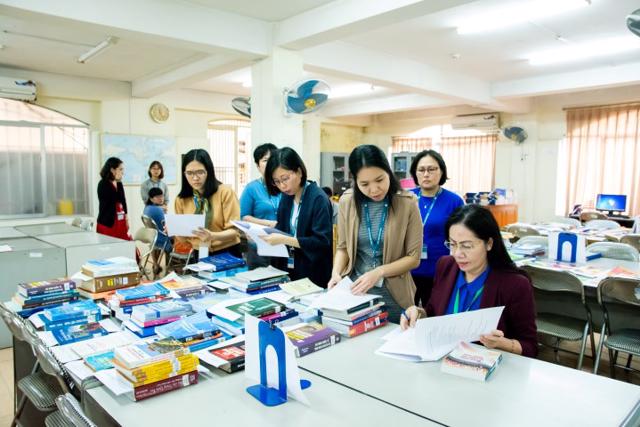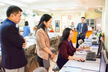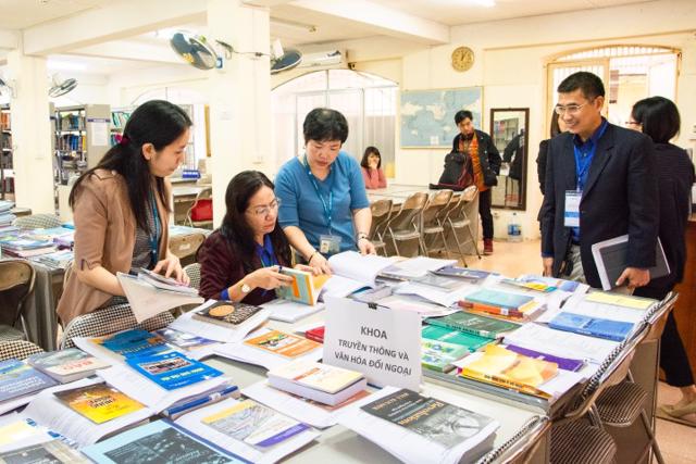 During the working day today, the delegation continued to study documents of evidence and worked directly with staffs in charge of the fields: HCTH, TCCB, university and postgraduate training, political work and students management, science management, international cooperation, KT&DBCL, financial management, document information, dormitory management, health care, staff representative in charge of criteria and standards in TDG reports. Along with that, the delegation took the time to visit and observe the school's facilities such as the library, the documentation rooms, the computer rooms, the practice room and some classrooms, yards, dormitory, canteen, medical station, and other facilities.