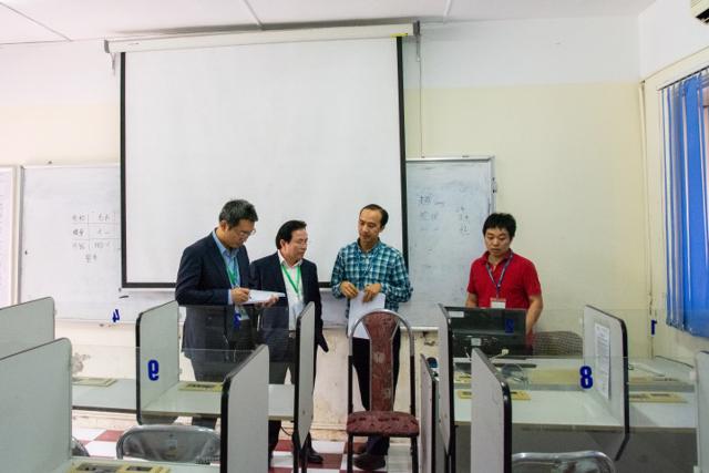 After the morning internal work program, the External Evaluation Group conducted a practical observation of the Institute's facilities, teaching and learning conditions; interviewing staff, lecturers as well as students in the classroom and dormitory.