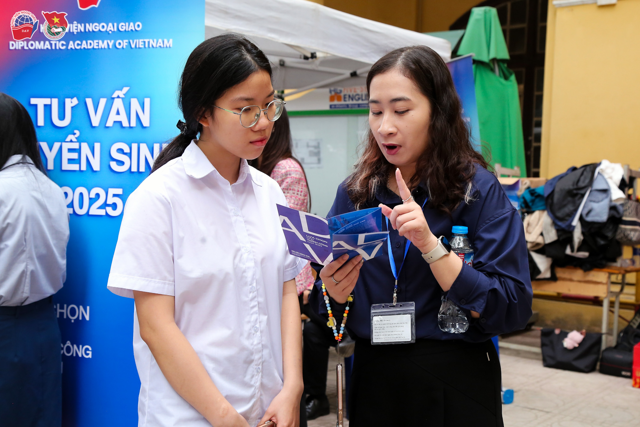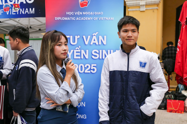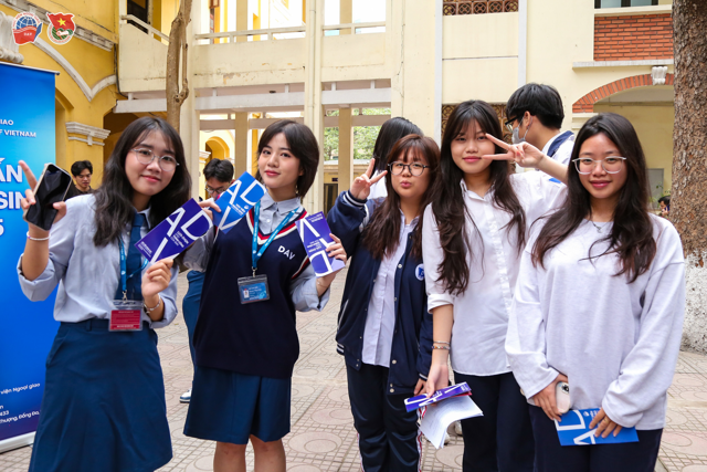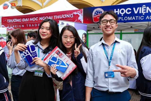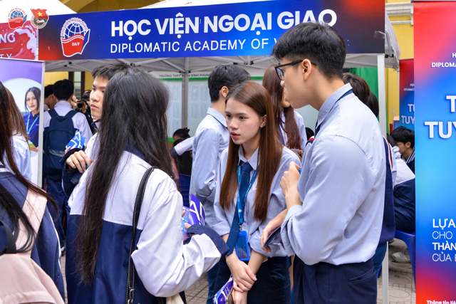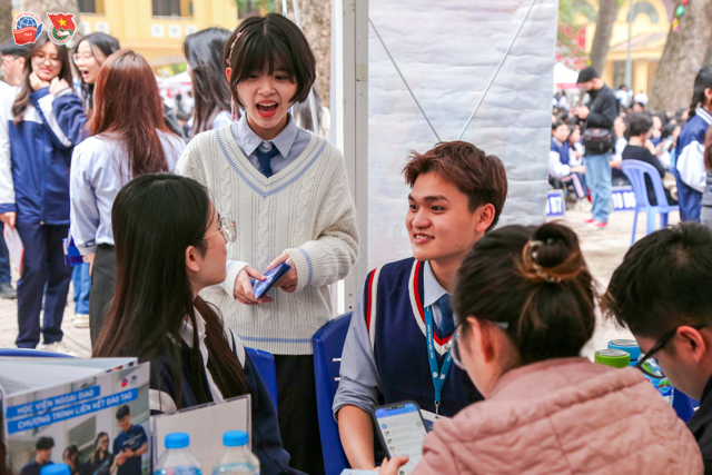 In the vibrant atmosphere of the event, DAV’s consultation booth attracted significant interest from students. Many questions were raised concerning admissions methods, academic programs, and career opportunities after graduation. In response, the consulting team not only offered detailed information but also enthusiastically shared practical insights, helping students gain a clearer foundation to choose suitable majors. Additionally, DAV student volunteers shared useful tips and important notes to help high school students better prepare for the upcoming admissions period.