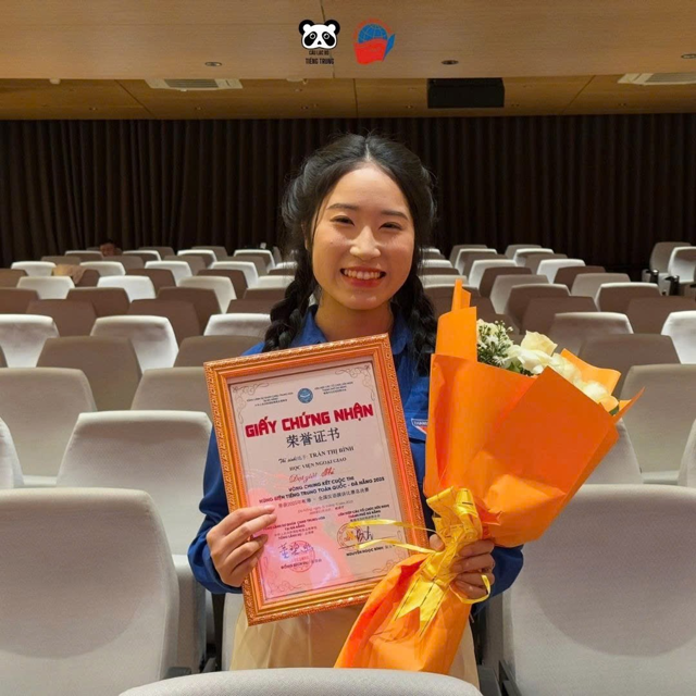On 15 November, at Duy Tan University (Da Nang City), student Trần Thị Bình (QHQT49C41132) from the Faculty of Chinese Language, Diplomatic Academy of Vietnam (DAV), won Second Prize at the Final Round of the National Chinese Language Oratory Contest – Da Nang 2025.