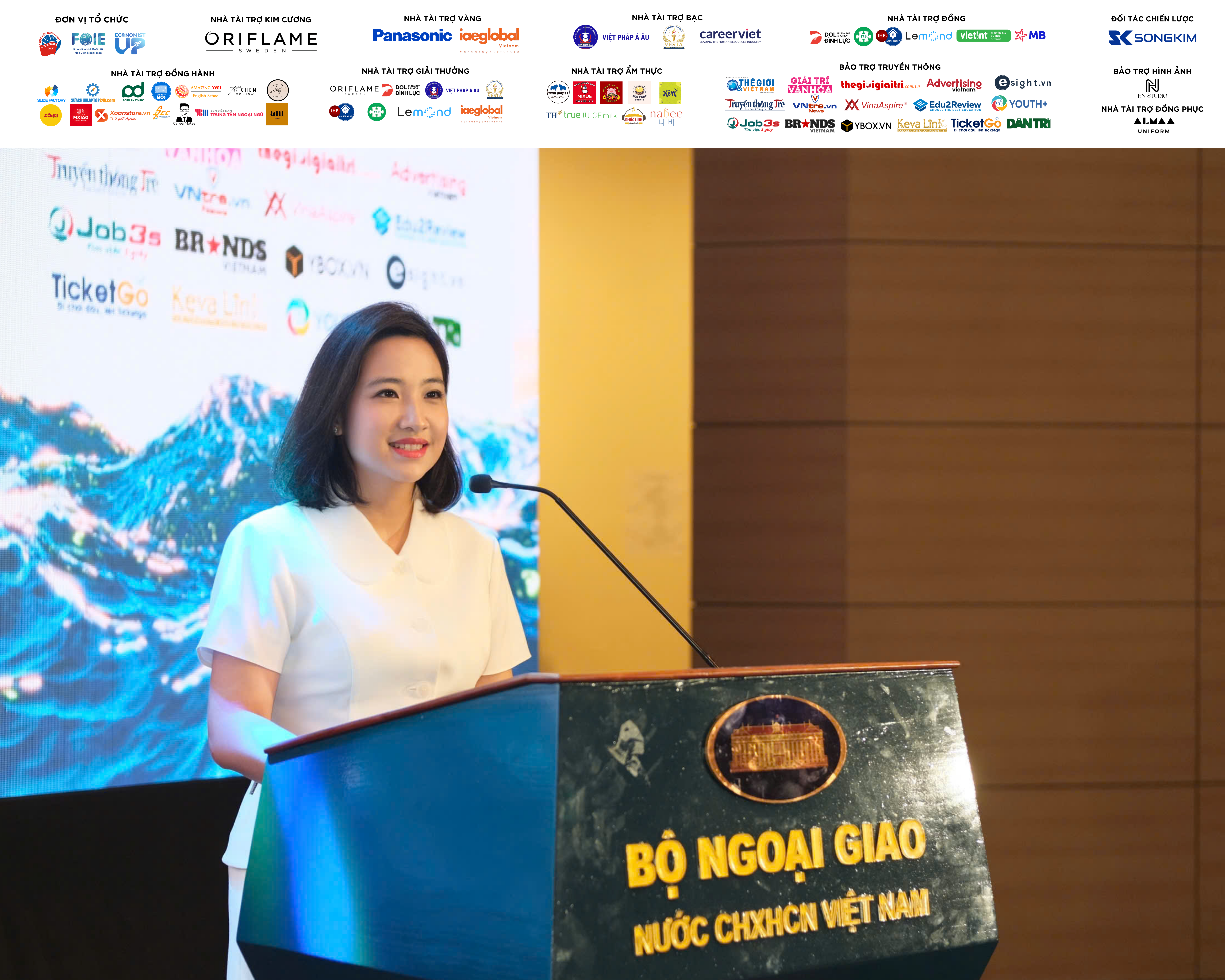 Representatives of the Sponsors, Ms. Nguyễn Thu Trang - Business Manager, Oriflame (Diamond Sponsor), and Mr. Nguyễn Hải Long - Marketing Manager, iaeGLOBAL (Gold Sponsor), expressed their honor to accompany Economist Up 2025 and emphasized the practical value of the competition.
