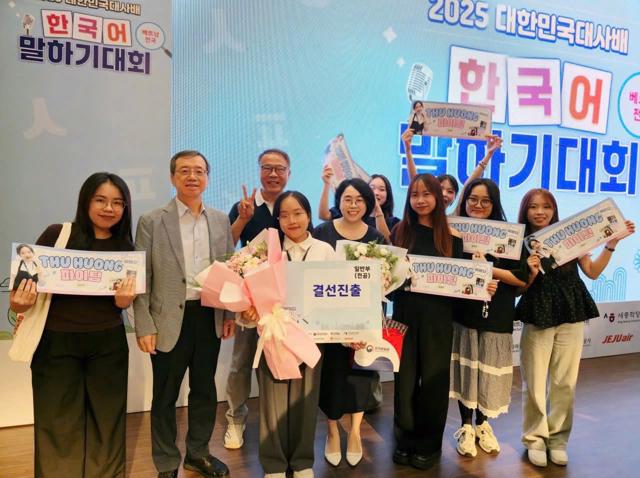 Representing the Diplomatic Academy, Ma Thi Thu Huong, a student of Class 49 - majoring in Korean Studies (Asia-Pacific Studies), Faculty of International Politics and Diplomacy, delivered an impressive presentation on the topic “베트남 문화의 매력” (The Appeal of Vietnamese Culture). With a natural storytelling style, well-structured arguments, and precise language skills, Thu Huong vividly showcased the richness of Vietnamese culture—from daily life and artistic traditions to the unique identity and values that Vietnam continues to contribute to the international community.