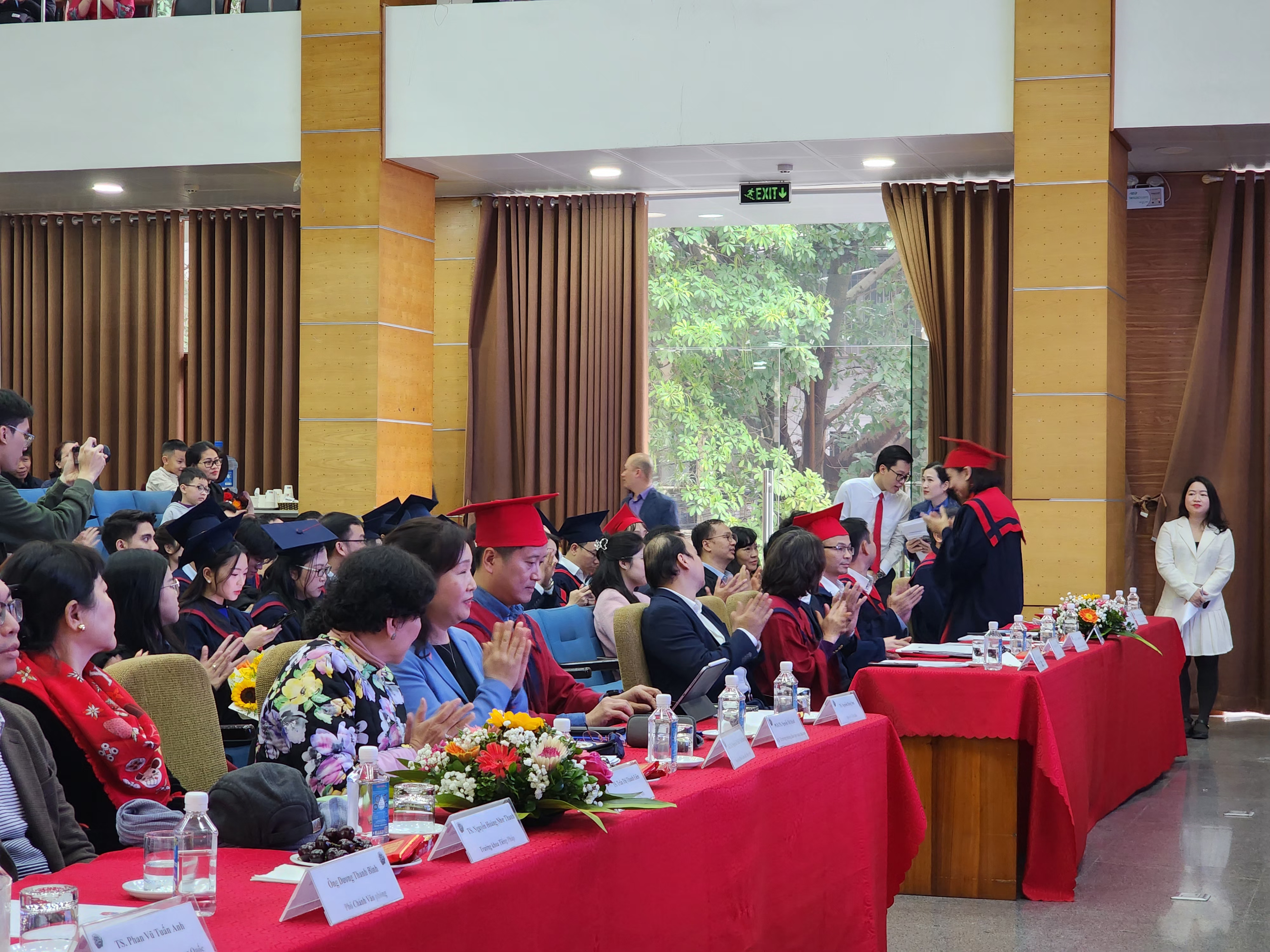 The ceremony also received meaningful congratulatory remarks from Assoc. Prof. Dr. Le Hai Binh, who is himself an alumnus of the Academy. He expressed pride in witnessing the growth and achievements of the graduates, encouraging them to continue strengthening their expertise, maintaining their dedication, and contributing to national development and international integration.