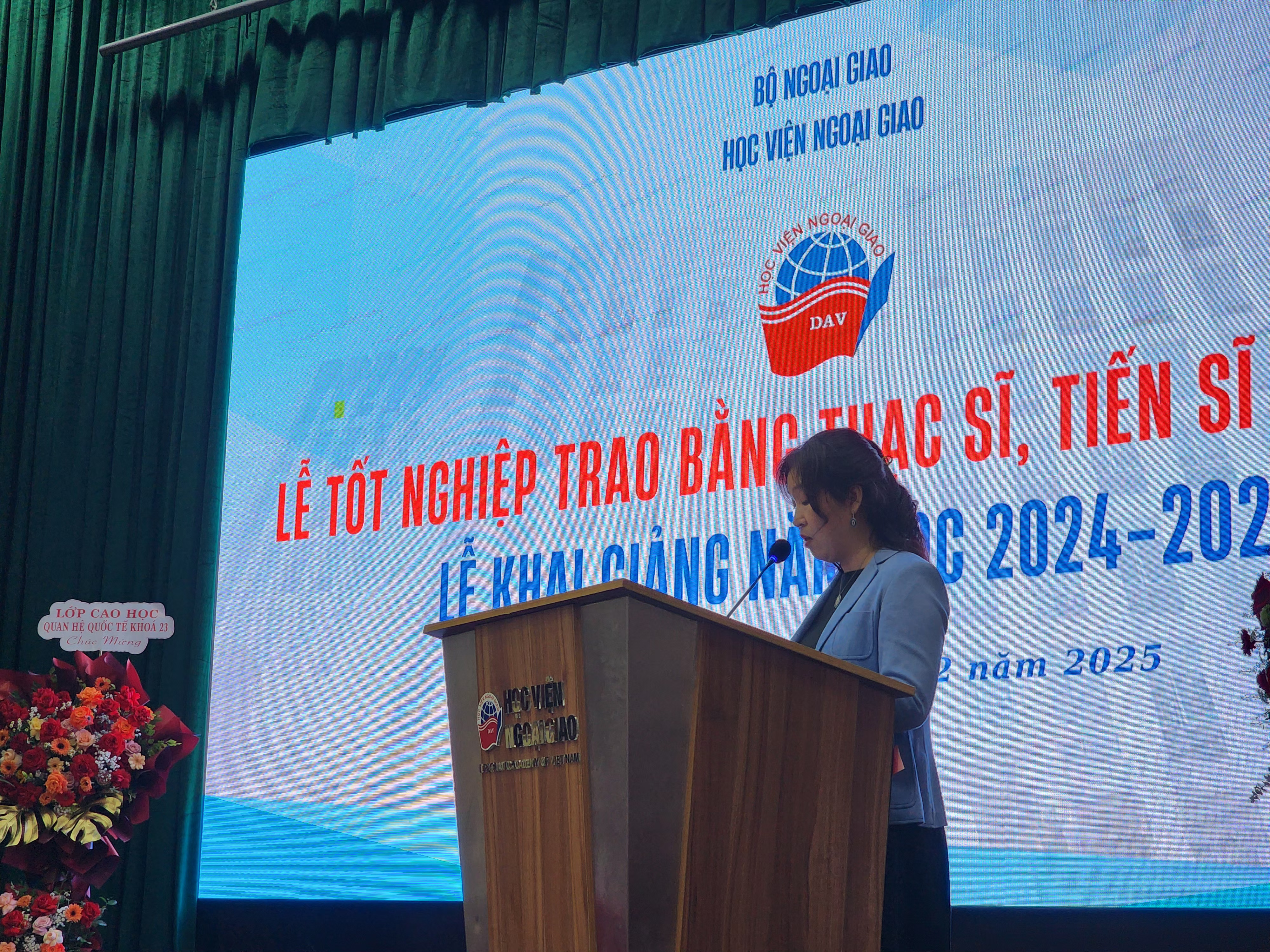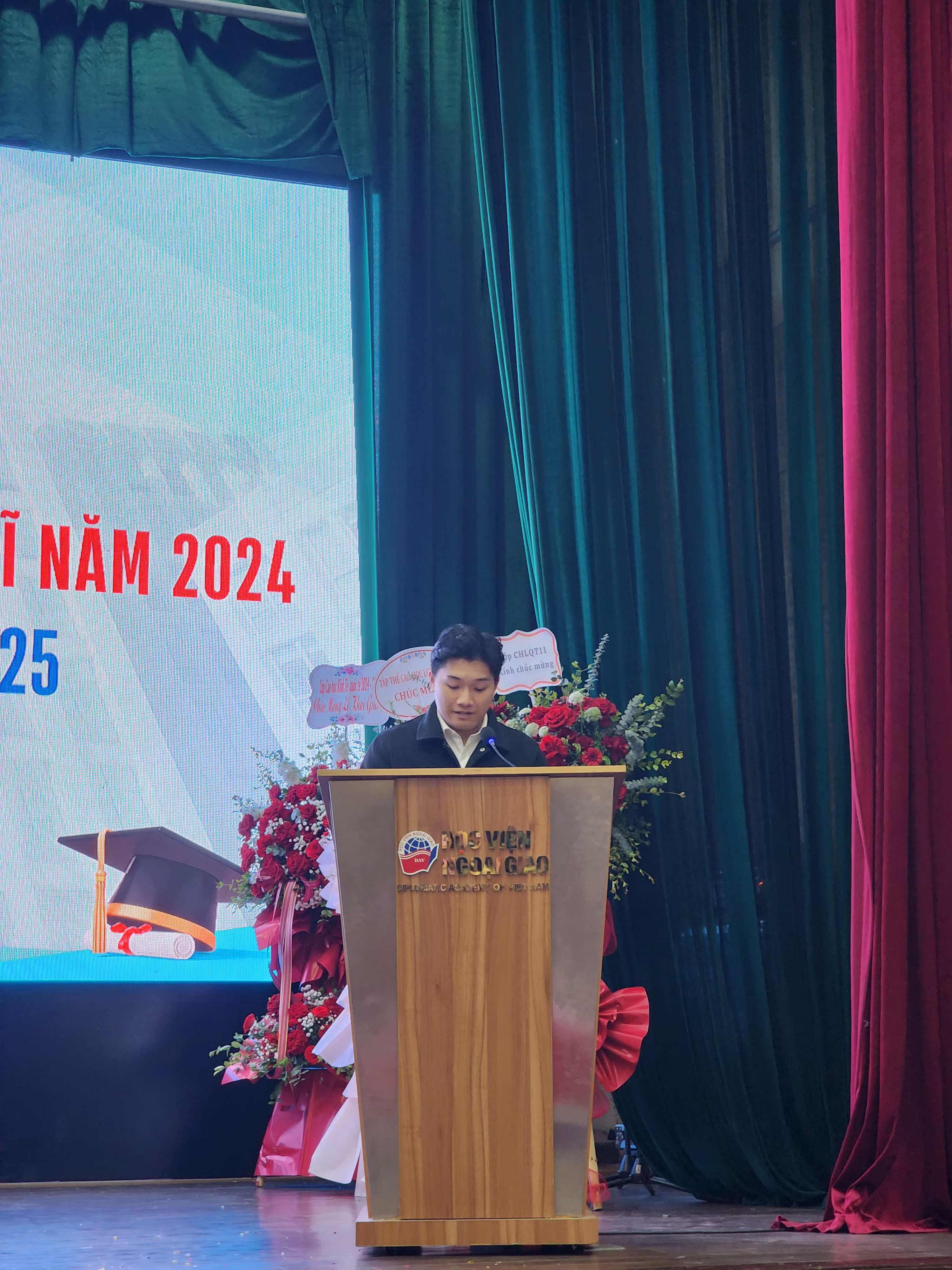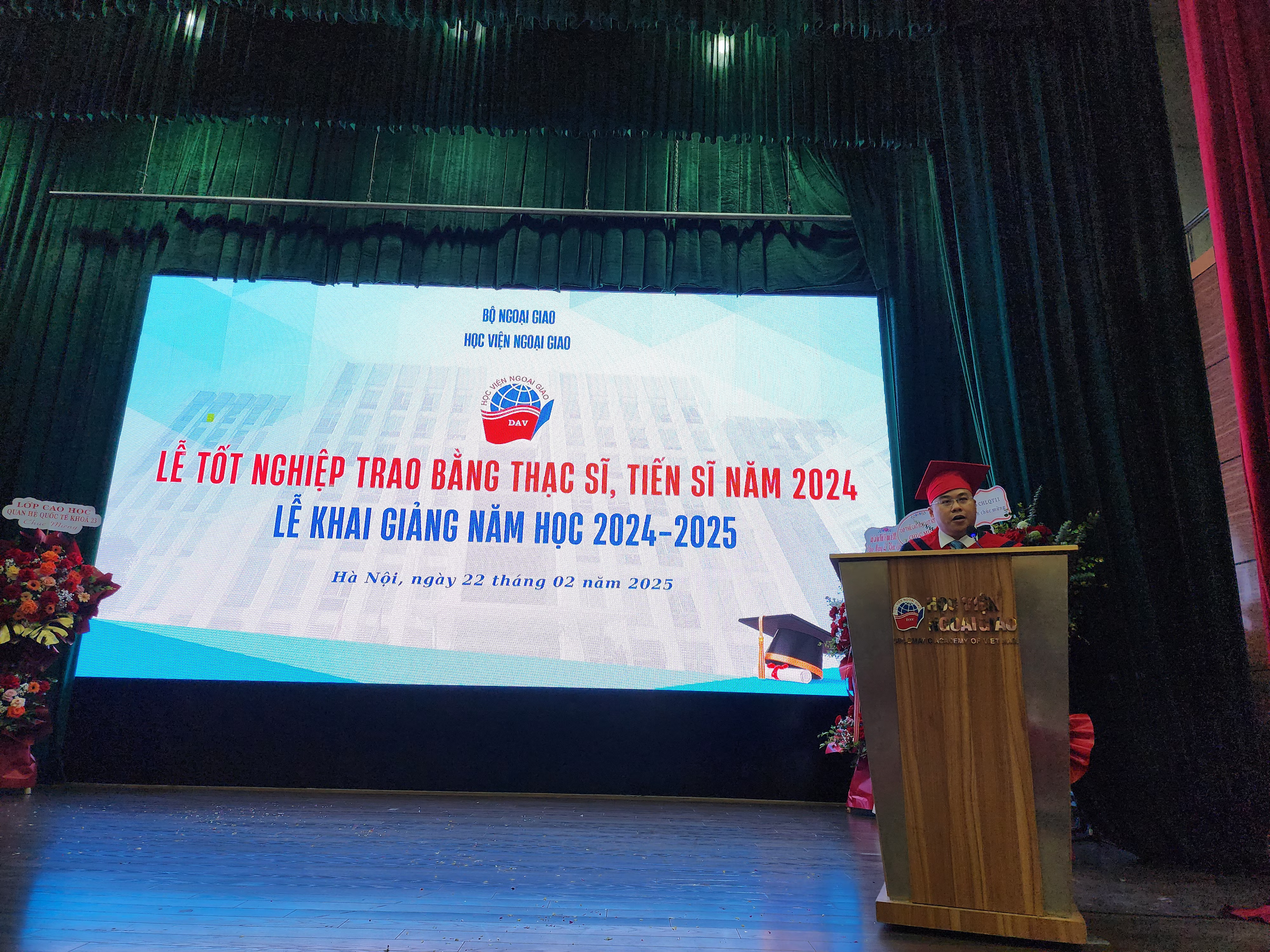 Alongside the joy and pride of the new Doctors and Masters, the ceremony also featured heartfelt reflections from newly admitted students. They expressed the honor of becoming part of the Diplomatic Academy of Vietnam—a prestigious academic environment with experienced faculty and strong scholarly foundations. With excitement and determination, the new students look forward to meaningful years of study, eager to acquire valuable knowledge to advance their careers and contribute to society.