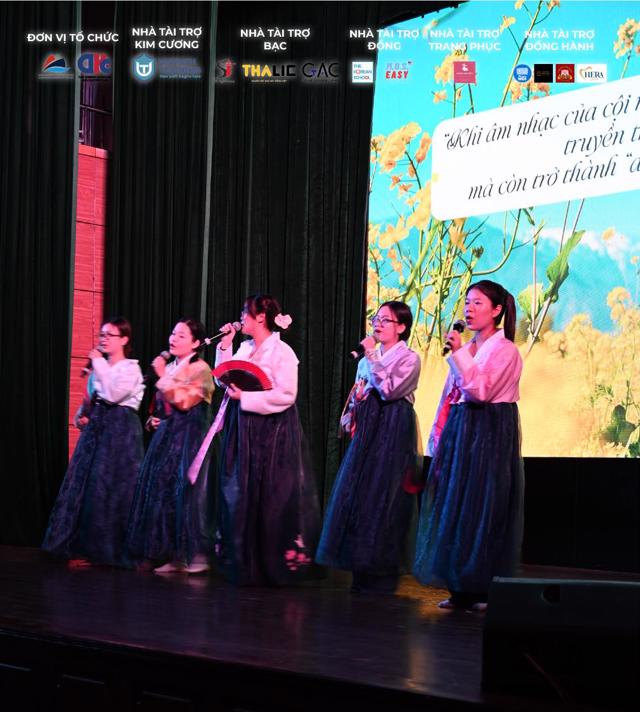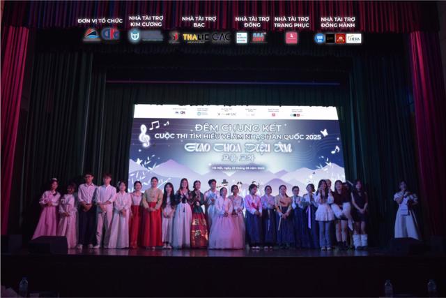 On the evening of May 22, the Grand Finale of “Giao Thoa Dieu Am – Korean Music Discovery Contest 2025” took place with spectacular success at Hall A, Diplomatic Academy of Vietnam. Five teams delivered five vibrant performances, taking the audience on a journey through fairy tales steeped in traditional Korean cultural identity, beautifully woven with the resonating sounds of modern melodies.