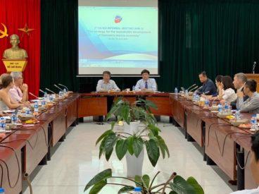 - On the morning of June 26th, 2020, the Diplomatic Academy of Vietnam held the third Hanoi Informal Meeting (HIM) with a number of embassies in Hanoi. In this meeting, the Director General of the Vietnam Administration of Seas and Islands Ta Dinh Thi presented main contents of the “Strategy for Vietnam’s sustainable development of the marine economy to 2030 with a vision to 2045”. The meeting received great attention and high-level participation of 9 representative agencies, including the Ambassador of France, the Ambassador of New Zealand, the Deputy Ambassador of the UK, the German Representative, the Political Counsellor of the Korean Embassy, the Economic Counselor of the US Embassy and First Secretary and Attaché of the Indian and Australian Embassies.