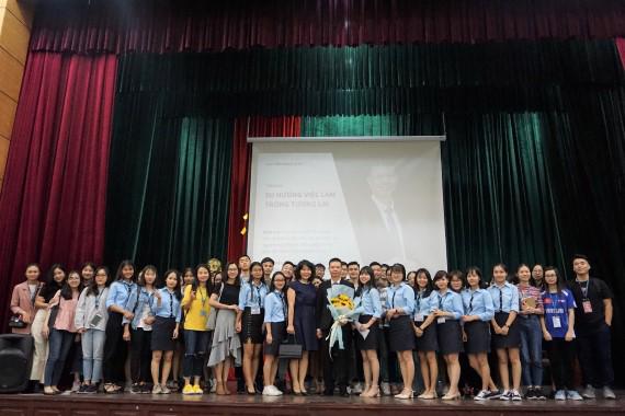 On the morning of October 14th, 2019, at Hall A, the English Faculty of Diplomatic Academy of Vietnam (DAV) held the workshop "Future employment trends" with the participation of nearly 300 students of Class 43. In a friendly, enthusiastic and sincere manner, former Deputy Director General and former Vice President of Citibank Pham Tuan Tu and Deputy Dean of the English Faculty Dr. Tran Thi Thanh Lien presented to the students the in-depth insights into future job trends as well as lessons on personal values.