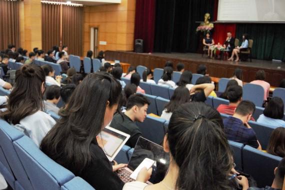 In addition, Dr. Tran Thi Thanh Lien, Deputy Dean of the English Faculty also shared with students the story of lifelong learning and how to not only catch up with the rapid scientific and technological development, but also be flexible to meet the demands of the times.