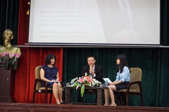 At the workshop, Pham Tuan Tu shared his experiences about his previous jobs and positions, from which he gained a lot of practical experiences on how to create his own personal values. He emphasized that from now on, students should create their own value and never stop improving it by constantly learning and gaining experience. Students should never hesitate to do the smallest, simplest jobs and instead of hiding their skills, be willing to share and help others more. You give away very simple, ordinary things, but what you get in return is worth a thousand times more.