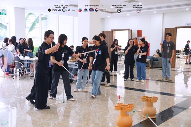 On the morning of May 25, the Thai Room at the Diplomatic Academy of Vietnam was transformed into a vibrant space overflowing with the colors and flavors of Korean culture. The "Korean Culture Festival 2024" welcomed a large number of enthusiastic students who participated in traditional folk games and enjoyed a series of exquisite and energetic musical performances. The sounds of laughter, blended with the rhythmic beats of K-pop Random Dance and engaging mini-games, painted a lively and memorable picture.