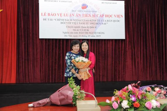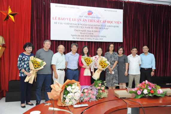 On April 21st, 2019, at the Diplomatic Academy of Vietnam, the postgraduate Dao Nguyet Hang successfully defended the Academy-level doctoral thesis specialized in International Relations, code 9.31.02.06 with the topic "Korea's economic diplomacy towards Vietnam from 1992 up to now”, under the scientific guidance of Assoc. Prof. Dr. Tran Tho Quang and Prof. Dr. Nguyen Thai Yen Huong.