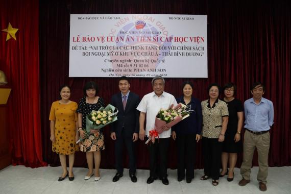 On September 20, 2018, at the Diplomatic Academy of Vietnam (DAV), postgraduate Phan Anh Son successfully defended his Ph.D. dissertation on the academy level in the International Relations major, coded 9.31.02.06 entitled “Think Tank’s role in American foreign policy in the Asia-Pacific region”, under the scientific supervision of Prof. Dr. Nguyen Thai Yen Huong