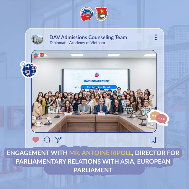 The exchange session between Mr. Antoine Ripoll and students of the Diplomatic Academy of Vietnam was an important occasion to discuss strengthening parliamentary ties between the EU and ASEAN, introduce the scope of work of each side, and explore potential cooperation between the European Parliament and the Diplomatic Academy of Vietnam, thereby contributing to the development and promotion of relations with Viet Nam.