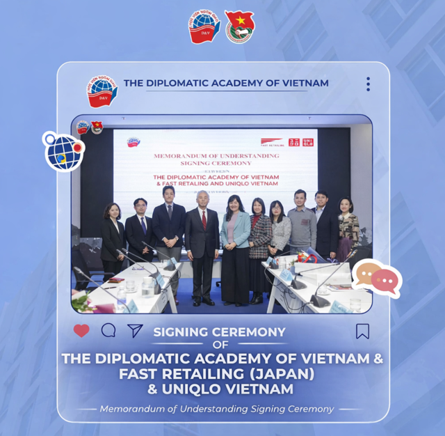 Fast Retailing Co., Ltd. (FRJP) owns more than 3,600 stores worldwide with a portfolio of well-known brands, including UNIQLO (UQVN). The signing ceremony of the cooperation agreement between the Diplomatic Academy of Vietnam and Fast Retailing Group (Japan) & UNIQLO Vietnam has opened up valuable employment opportunities in Japan for Vietnamese students in general, and for students of the Diplomatic Academy of Vietnam in particular, within a young, talented, and highly motivated workforce.
