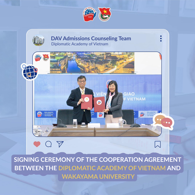 The Diplomatic Academy of Vietnam and Wakayama University (Japan) held a signing ceremony for a cooperation agreement aimed at expanding opportunities for closer collaboration and more frequent exchanges between students of the two countries. This partnership lays the foundation for long-term cooperation between the two institutions while creating additional opportunities for students to study, develop, and enhance their academic and professional experiences in Japan.