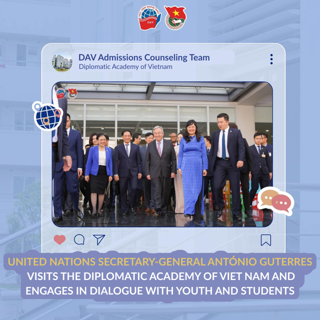 UNITED NATIONS SECRETARY-GENERAL ANTÓNIO GUTERRES VISITS THE DIPLOMATIC ACADEMY OF VIETNAM AND ENGAGES IN DIALOGUE WITH YOUTH AND STUDENTS