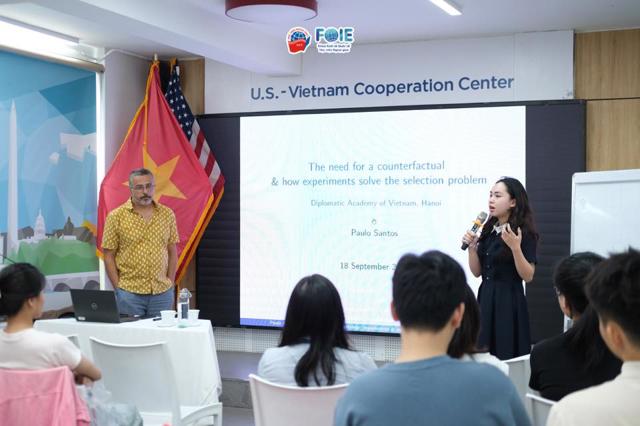 The seminar was delivered by Professor of Economics Paulo Santos from Monash University, Australia, with the participation of many lecturers and students from the Faculty of International Economics. Professor Paulo Santos has extensive experience in economics, sociology, and resource–environment economics, with a strong focus on applying Randomized Control Trials (RCTs).
