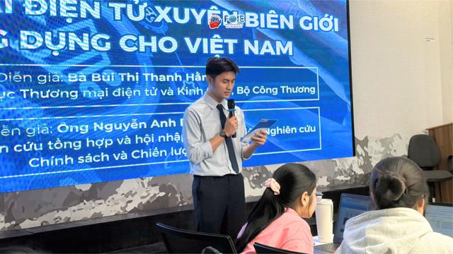 The first session featured a presentation by Ms. Bùi Thị Thanh Hằng on “Cross-Border E-Commerce.” She provided in-depth insights into the rapid global growth of e-commerce and addressed key policy and regulatory issues related to e-commerce and cross-border e-commerce in Vietnam. Ms. Hằng also highlighted major policy directions aimed at promoting exports in this sector. Her discussion allowed students to gain both practical knowledge and a clearer understanding of the overall policy landscape governing this field in Vietnam.