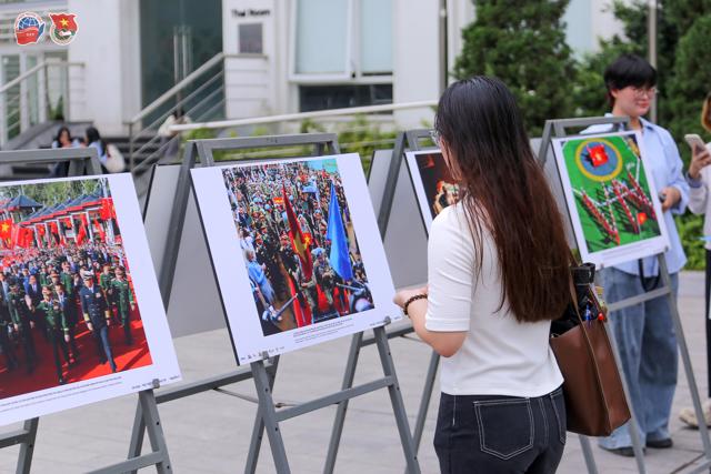 Following the Seminar, guests and students visited the photo exhibition “80 Years - A Confident Vietnam,” featuring selected works from the eponymous photo book by artist Nguyen A. Beyond vividly portraying the nation’s achievements over 80 years of independence and development, the photographs authentically depict the daily lives and international peacekeeping missions of officers and soldiers of the Viet Nam People’s Army, reinforcing the image of a strong, united, and forward-looking Viet Nam.