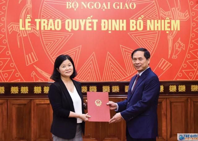 Permanent Deputy Minister Bui Thanh Son handed the decision to appoint Ms. Bui Thi Hue, former Counselor of the Vietnam Embassy in the United States, returning from her term, Deputy Director, Deputy Chief of the Office of the National Border Committee.
