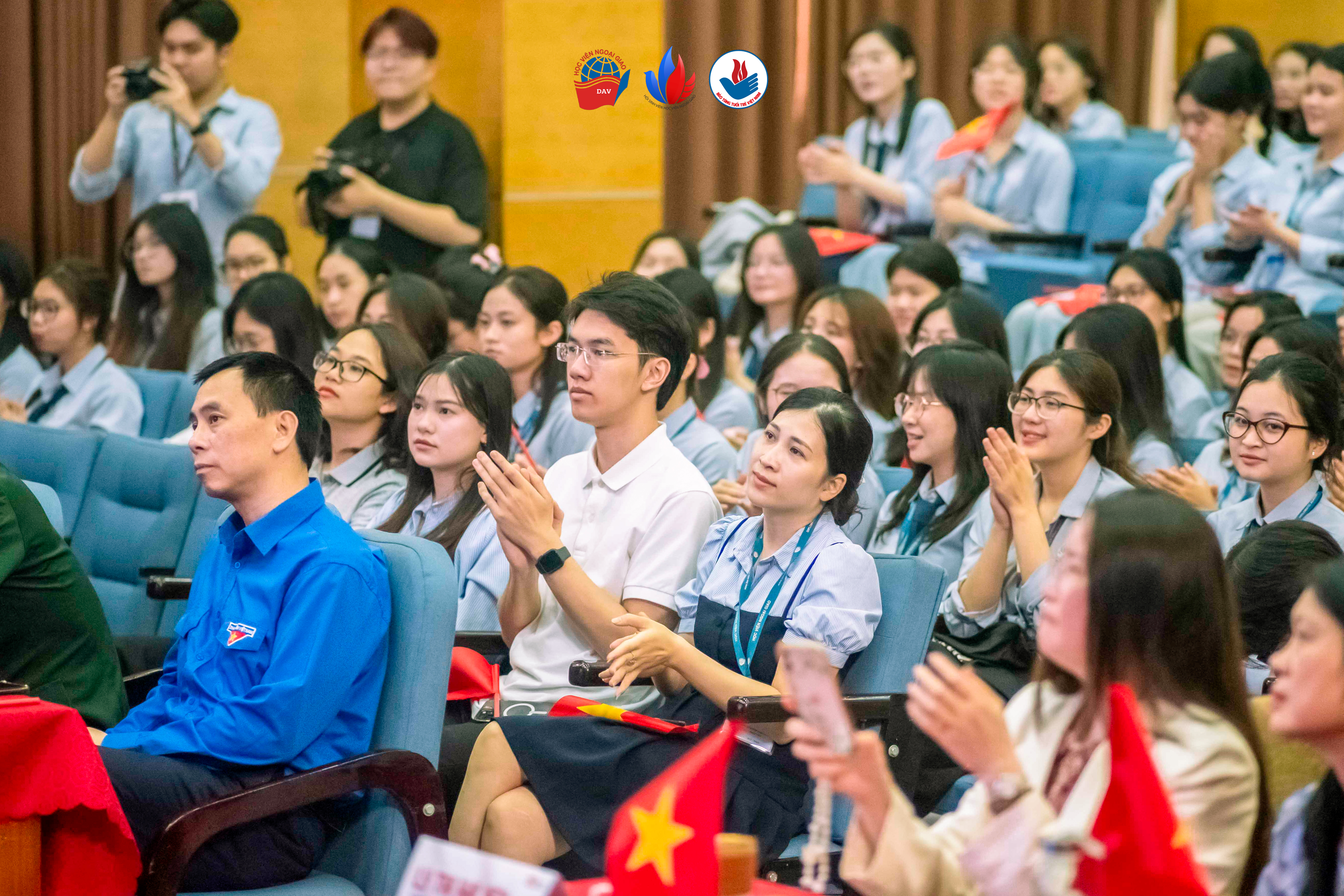 At the Talkshow, students had the opportunity to interact with Lieutenant General, Hero of the People's Armed Forces, Hero of Labor Pham Tuan - the main speaker of the talkshow. In addition, the event also had the participation of Mr. Tran Van Tam - Deputy Secretary General of the Vietnam Friendship Association, Director of the Vietnam - Russia Cooperation Center; Mr. Nguyen Viet Hung - Director of the Youth Museum. On the side of the Diplomatic Academy of Vietnam, the talkshow had the presence of Ms. Ly Thi Hai Yen - Head of the Department of Political Theory, Mr. Vu Tuan Anh - Head of the Department of Communication and Foreign Culture and Ms. Tran Ngoc Ninh - Deputy Head of the Department of Chinese along with representatives of the Departments, Faculties, units, lecturers and students.