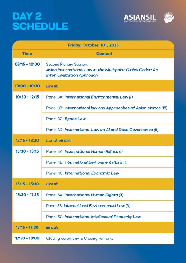 - The 10th Biennial Conference of the Asian Society of International Law to be held on 9th and 10th October, 2025;