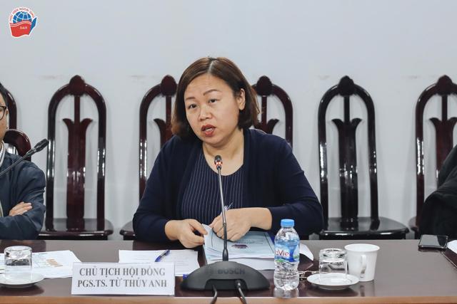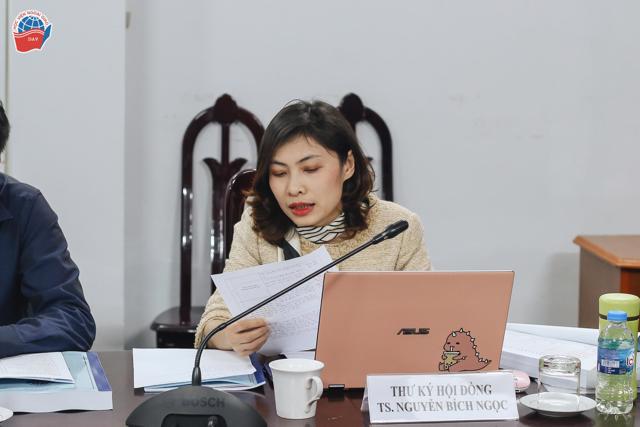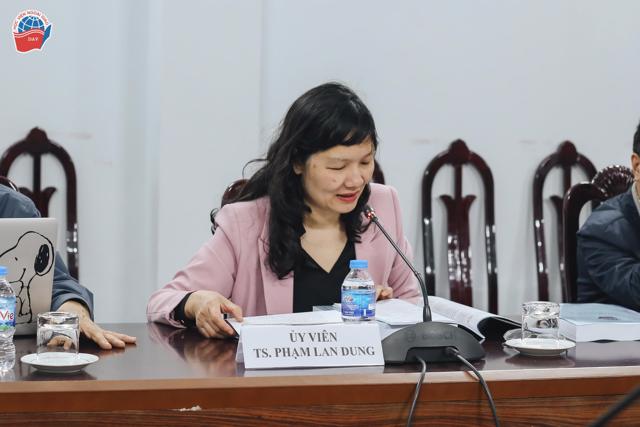The evaluation board consisted of: Associate Professor Dr. Tu Thuy Anh (Head of the Faculty of International Economics, Foreign Trade University) - Chairman of the Board, and board members including Associate Professor Dr. Ho Dinh Bao (Head of the Faculty of Economics, National Economics University), Dr. Doan Ngoc Thang (Lecturer, Banking Academy), Dr. Nguyen Bich Ngoc (Lecturer, National Economics University), Dr. Ngo Duy Ngo (Former Deputy Director of the Diplomatic Academy), Dr. Pham Lan Dung (Acting Director of the Diplomatic Academy of Vietnam); Nguyen Viet Anh (Deputy Director of the Personnel and Organization Department of the Ministry of Foreign Affairs).
