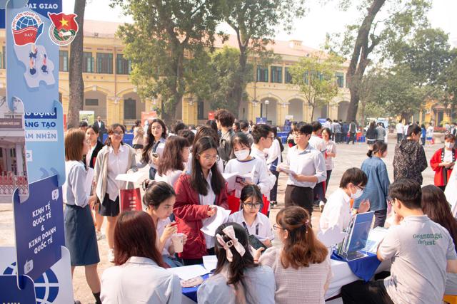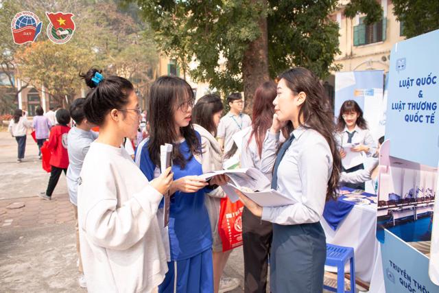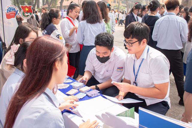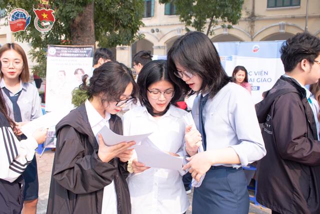 Throughout the event, the Admissions Counseling Team of the Diplomatic Academy of Vietnam had the opportunity to share information with numerous students and parents who are interested in and passionate about DAV. At the fair, students were able to directly learn more about the Academy and have their questions answered regarding academic programs, courses, and especially the admissions methods for various majors of the Diplomatic Academy of Vietnam in the upcoming period.