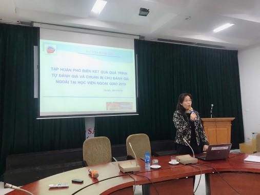 At the training sessions, Head of Subcommittee 1 Assoc. Prof. Dr. Nguyen Thi Hanh of the Faculty of International Politics and Diplomatic Studies informed staff, the faculty and students about the results of the self-assessment process as well as providing essential information for the Actual Site Visit following the procedures for assessing higher education institutions quality of the Ministry of Education and Training from January 3rd to 8th 2019 in the Diplomatic Academy of Vietnam.