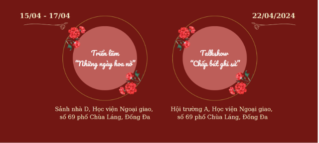 The exhibition "Days of Blossoming Flowers" is open to the public from April 15-17, 2024, in the lobby of Building D, Diplomatic Academy. Taking the theme of the Liberation of the South and National Reunification Day on April 30, 1975, the exhibition will display books and pictures depicting the Ho Chi Minh Campaign and the historic day of April 30, 1975.