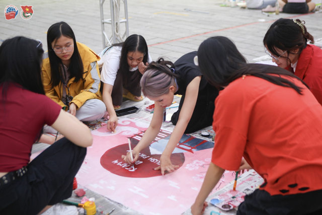 During the program, the Cultural Festival unfolded in a vibrant and colorful atmosphere. Student teams collaborated to conceptualize and decorate cultural booths representing traditional festivals from various countries around the world. Demonstrating remarkable creativity, the teams crafted artistic handmade products and transformed their booths into unique cultural spaces, leaving strong impressions with engaging activities inspired by international festive themes.
