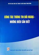 Cuốn sách cung cấp cho bạn đọc một số kiến thức cơ bản liên quan đến công tác thông tin đối ngoại như chủ trương, đường lối của Đảng và Nhà nước ta trong việc thực hiện công tác thông tin đối ngoại trong tình hình mới, đánh giá vai trò của công tác đối ngoại nhân dân, công tác thông tin, tuyên truyền về hội nhập kinh tế quốc tế, vai trò của báo chí thông tin đối ngoại trong tình hình mới.