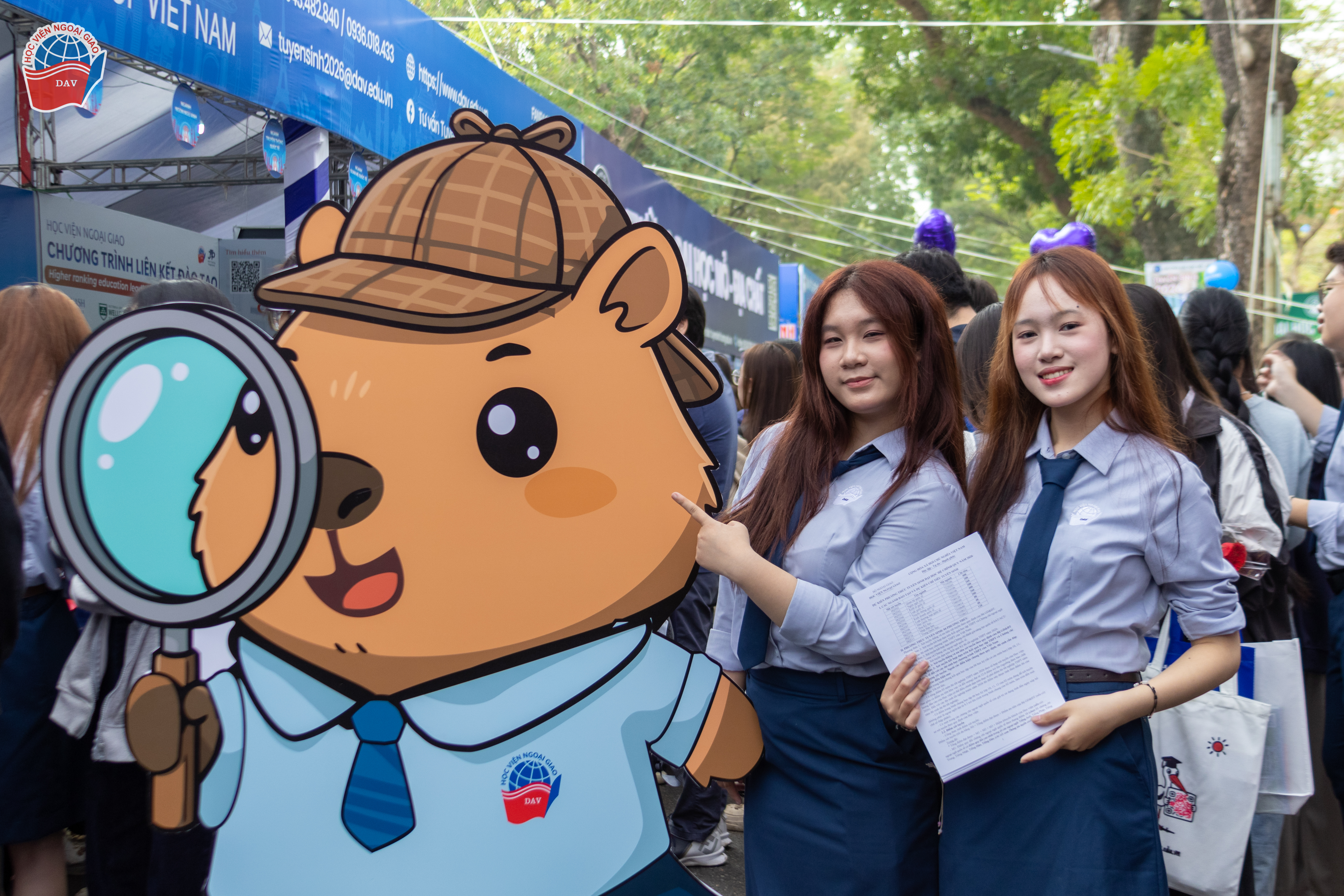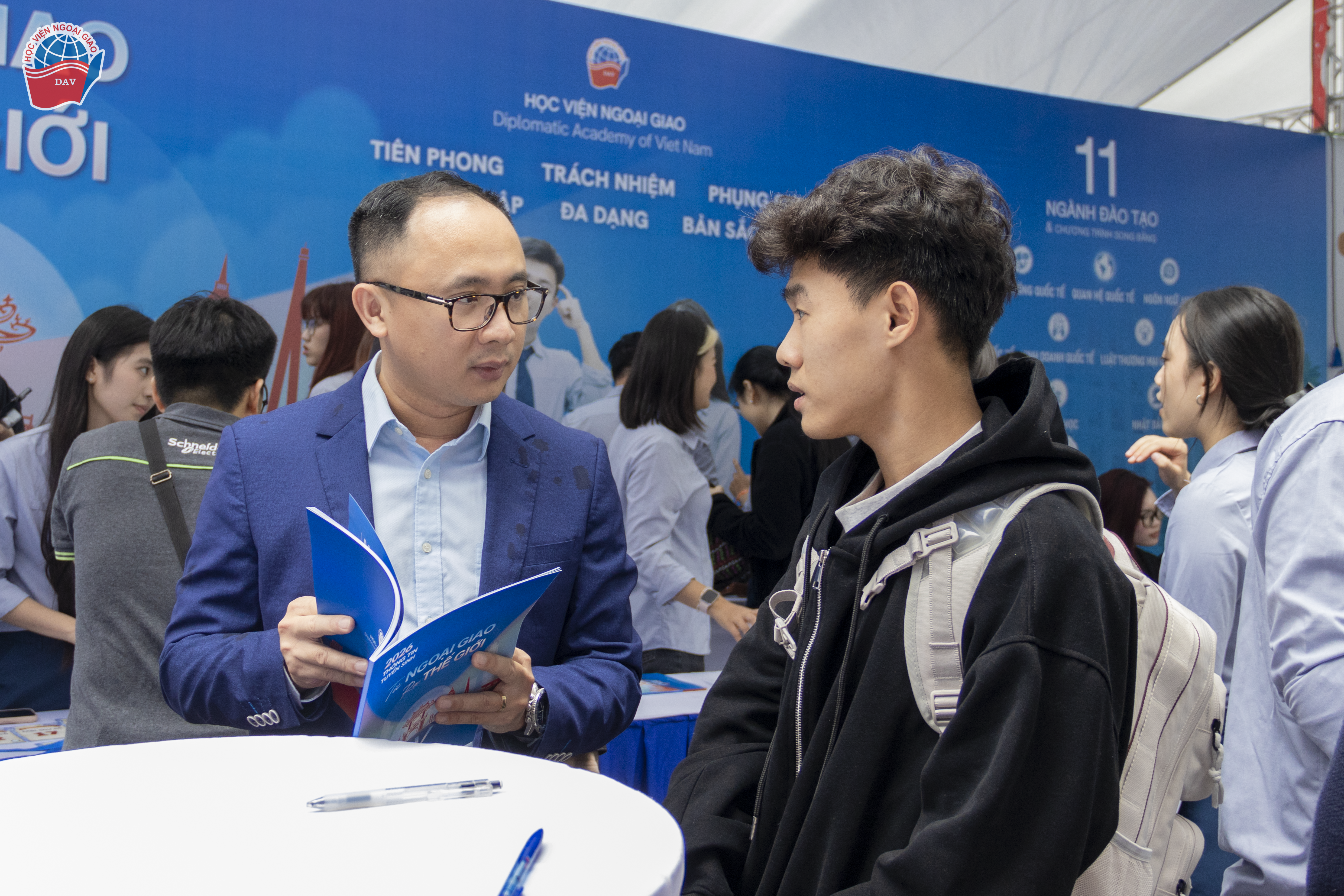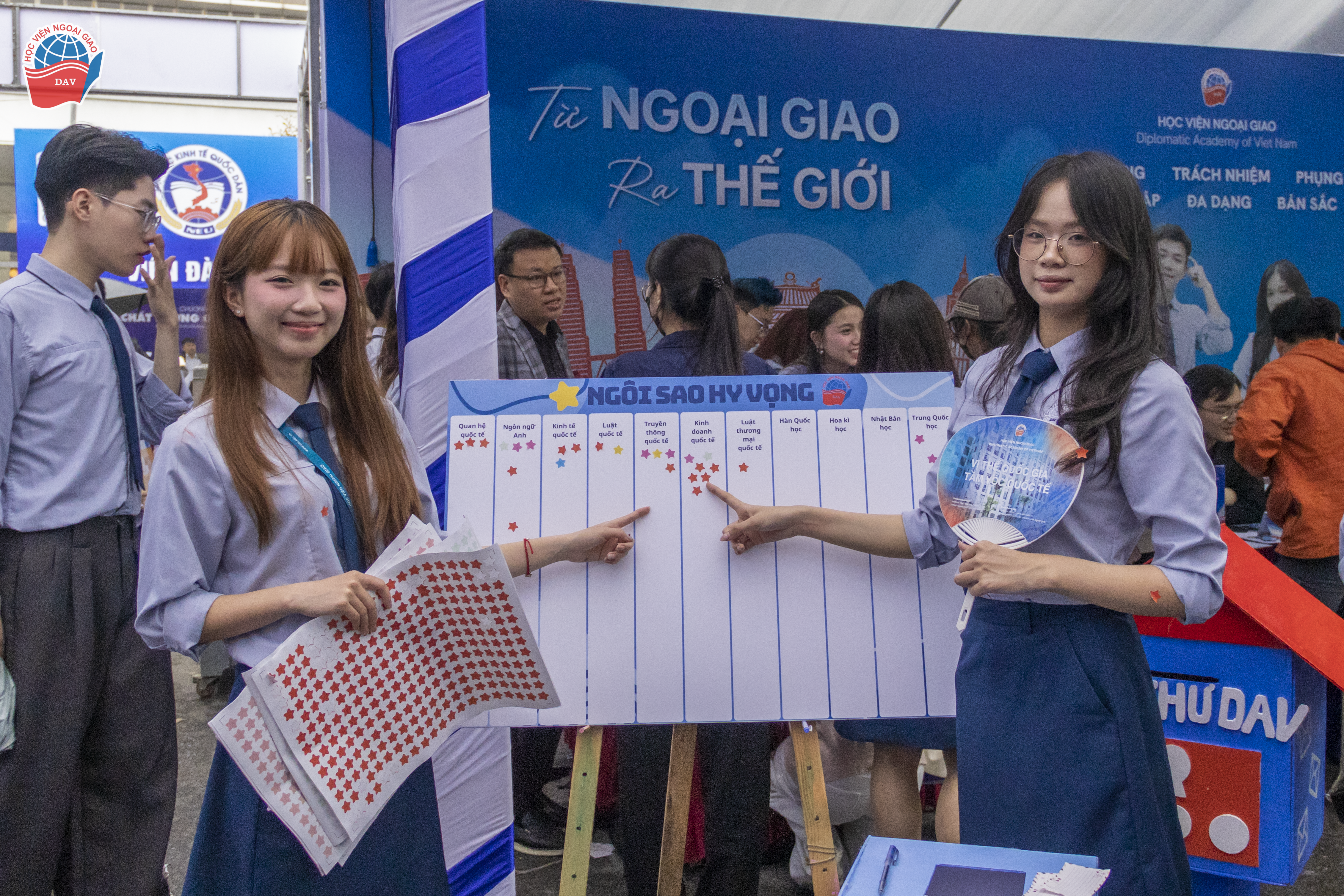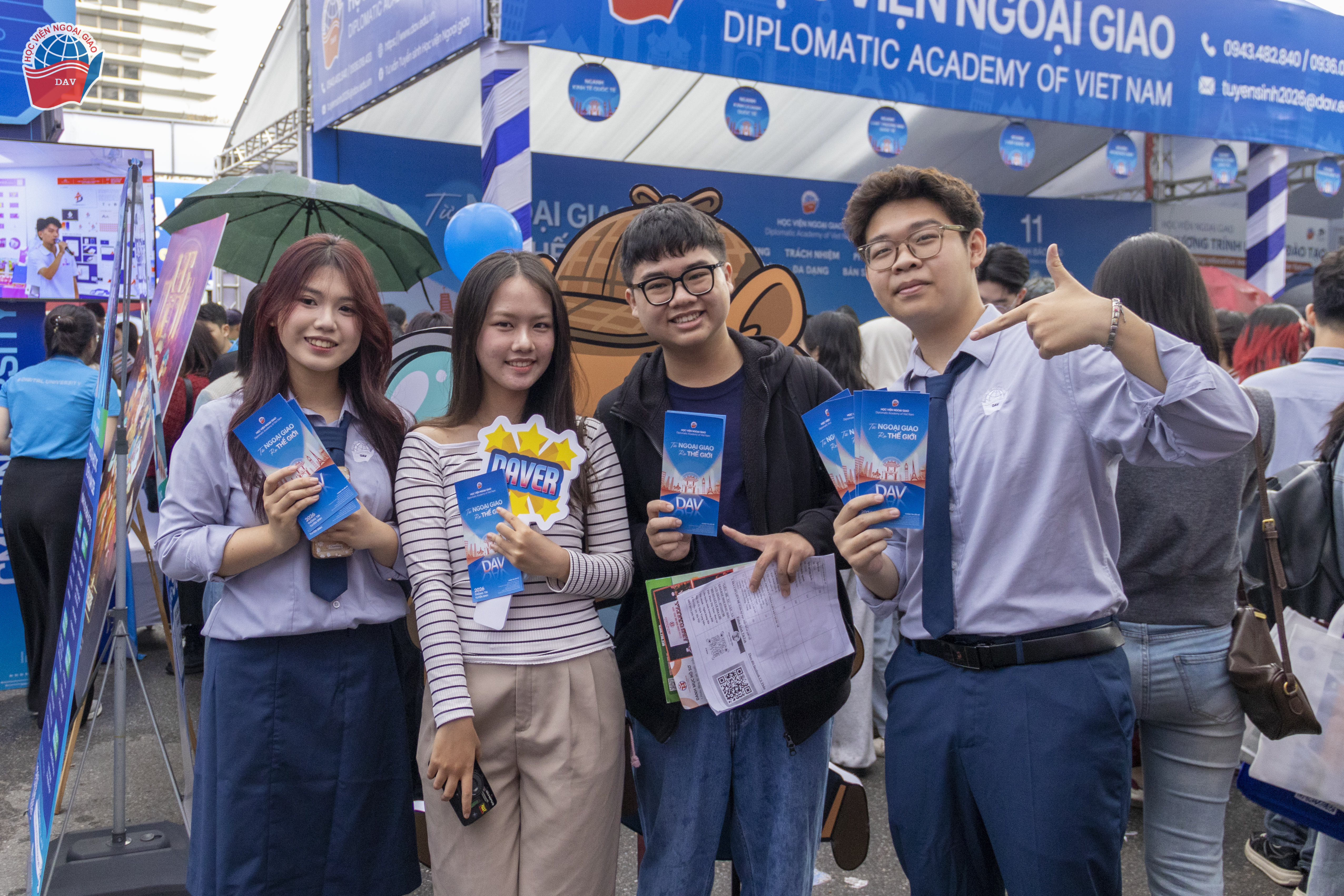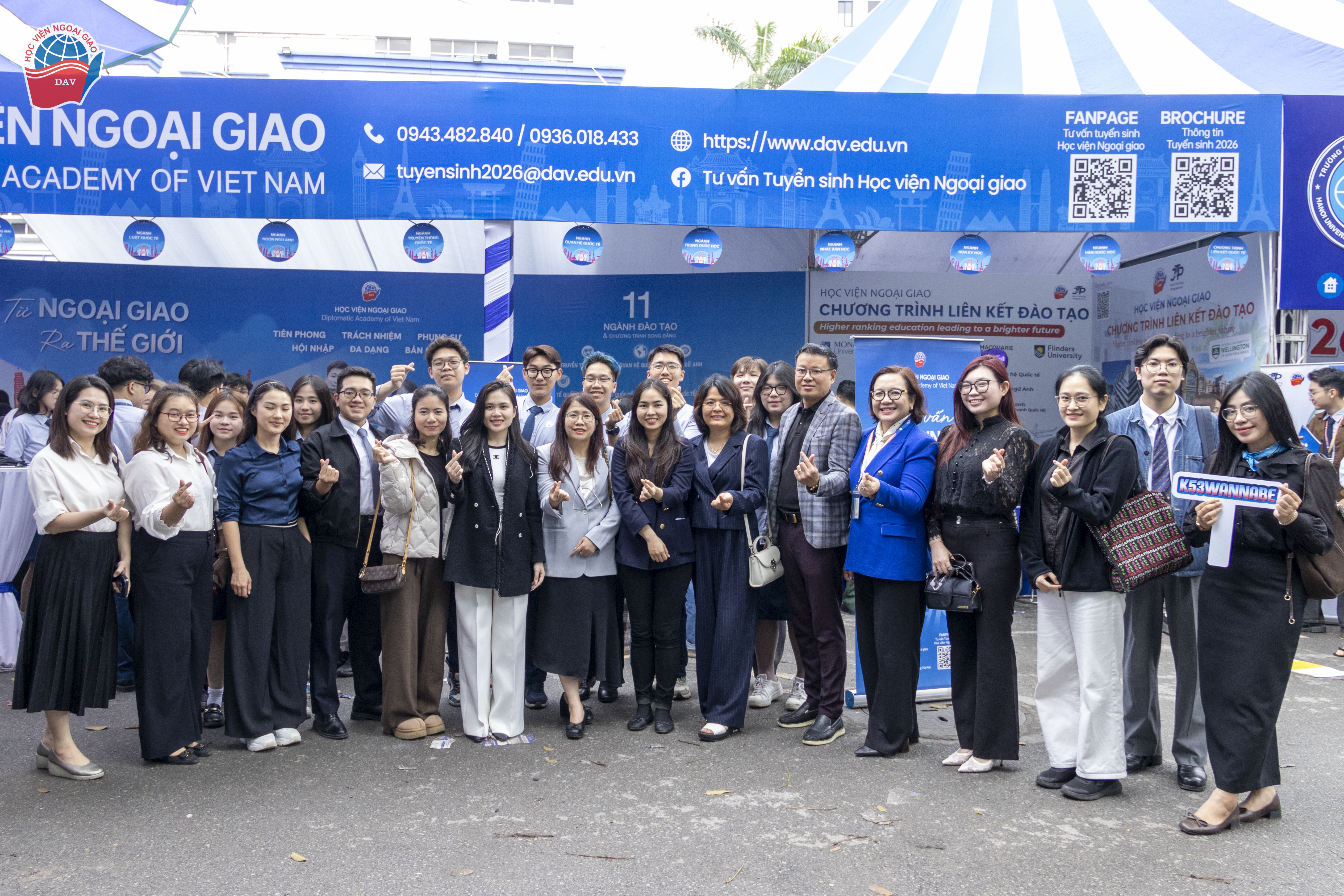 Với phong cách tư vấn chuyên nghiệp, thân thiện và nhiệt tình, gian thông tin của Học viện Ngoại giao đã thu hút sự quan tâm của hàng nghìn quý phụ huynh và học sinh đến từ Hà Nội và nhiều tỉnh thành lân cận. Những cuộc gặp gỡ trực tiếp không chỉ giúp các quý phụ huynh và các bạn học sinh hiểu rõ hơn về môi trường học tập tại Học viện, mà còn góp phần lan tỏa hình ảnh năng động, cởi mở và truyền cảm hứng của sinh viên Học viện Ngoại giao tới các sĩ tử “K53 DAV Wannabe”.
