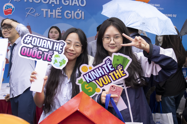 Không gian tư vấn của Học viện Ngoại giao đã sôi nổi ngay từ những giờ đầu khi đội ngũ giảng viên, cán bộ và sinh viên của Học viện trực tiếp chia sẻ, giải đáp hàng loạt câu hỏi của học sinh và phụ huynh về chương trình đào tạo, phương thức xét tuyển cũng như những điểm mới trong dự kiến phương thức tuyển sinh năm học 2026 - 2027. Không chỉ dừng lại ở những thông tin tuyển sinh, gian tư vấn của Học viện còn trở thành điểm dừng chân đầy năng lượng với những cuộc trò chuyện, giao lưu cởi mở, các hoạt động minigame thú vị cùng nhiều phần quà hấp dẫn dành cho các bạn học sinh.