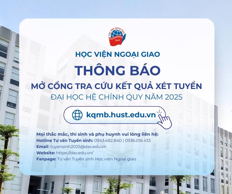 📩 Học viện sẽ gửi email và bản cứng Giấy báo trúng tuyển, Thư chúc mừng và Hướng dẫn nhập học đến tất cả thí sinh đủ điều kiện. Thí sinh lưu ý thường xuyên kiểm tra email để cập nhật thông tin.
