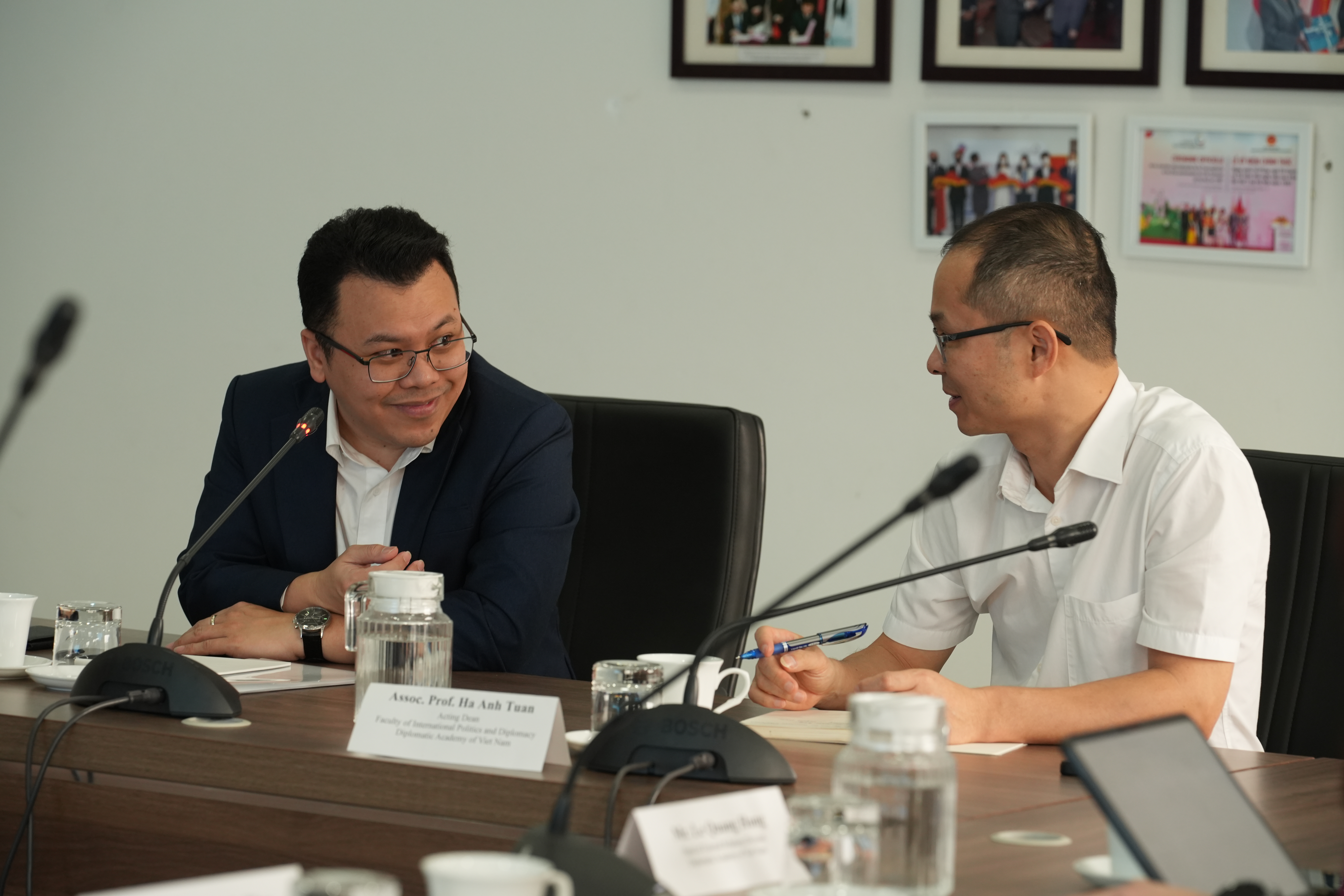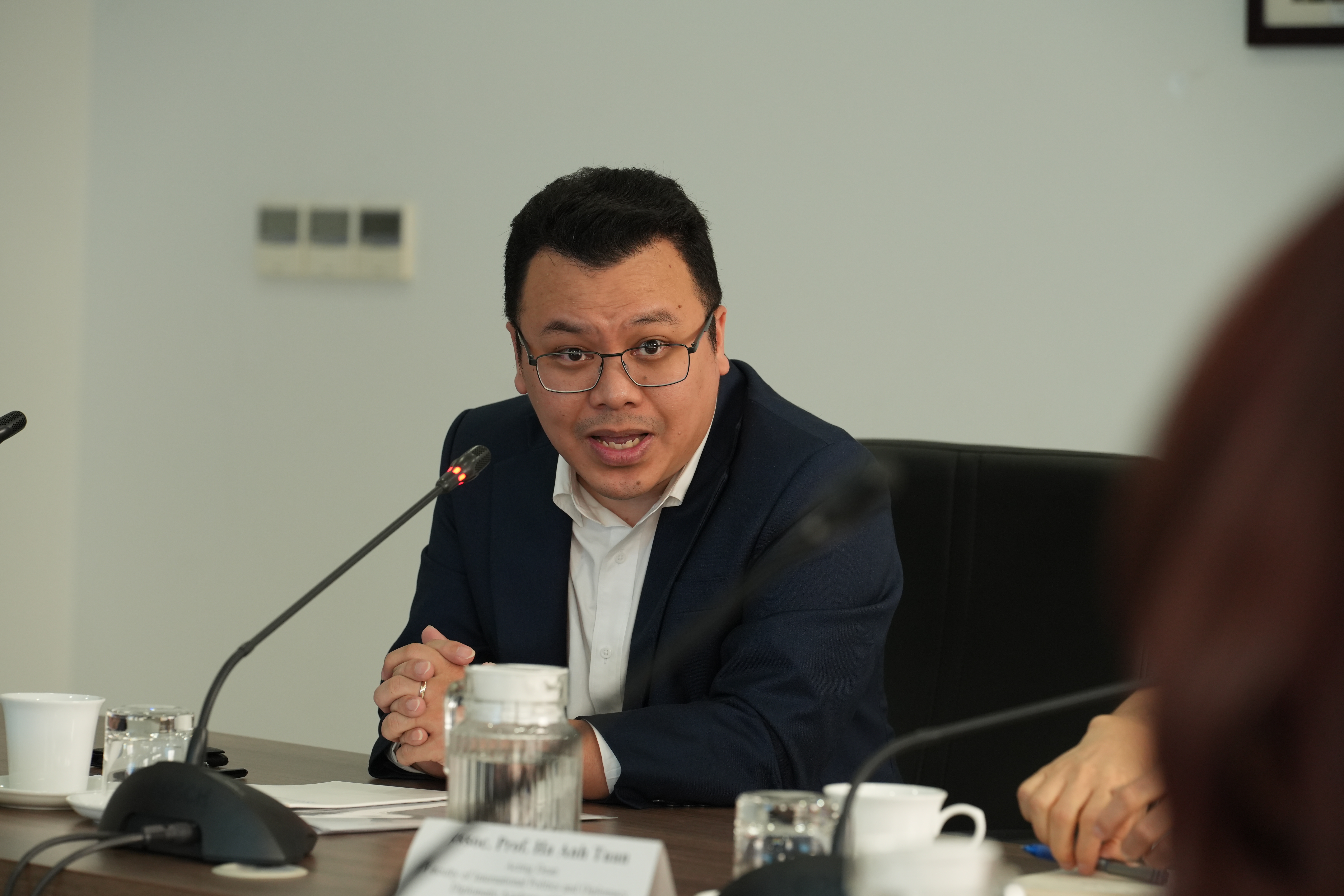 Tại phiên trao đổi mở đầu, PGS. TS. Hà Anh Tuấn, Q. Trưởng khoa Chính trị Quốc tế và Ngoại giao đã tiếp đoàn và chia sẻ về định hướng quốc tế hóa chương trình đào tạo của Học viện, trong đó có kế hoạch nâng cấp chương trình giảng dạy cao học bằng tiếng Anh, song song với những nỗ lực để mở rộng mạng lưới sinh viên trao đổi tới các trường đại học quốc tế.
