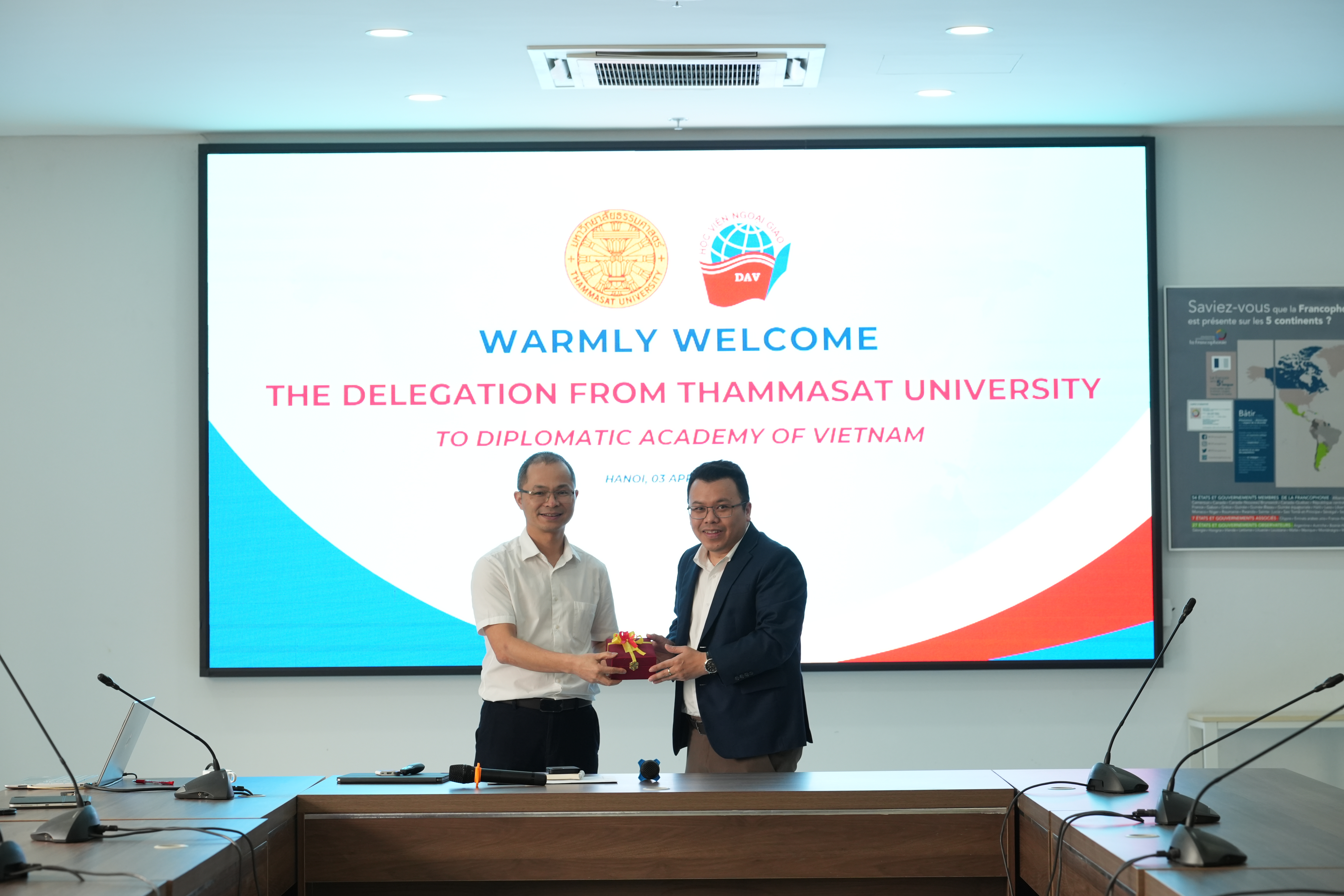 Sáng ngày 3/4/2026, Học viện Ngoại giao Việt Nam (DAV) đã chào đón đoàn cán bộ, giảng viên và học viên cao học đến từ Đại học Thammasat, Thái Lan trong khuôn khổ chuyến thăm học thuật.