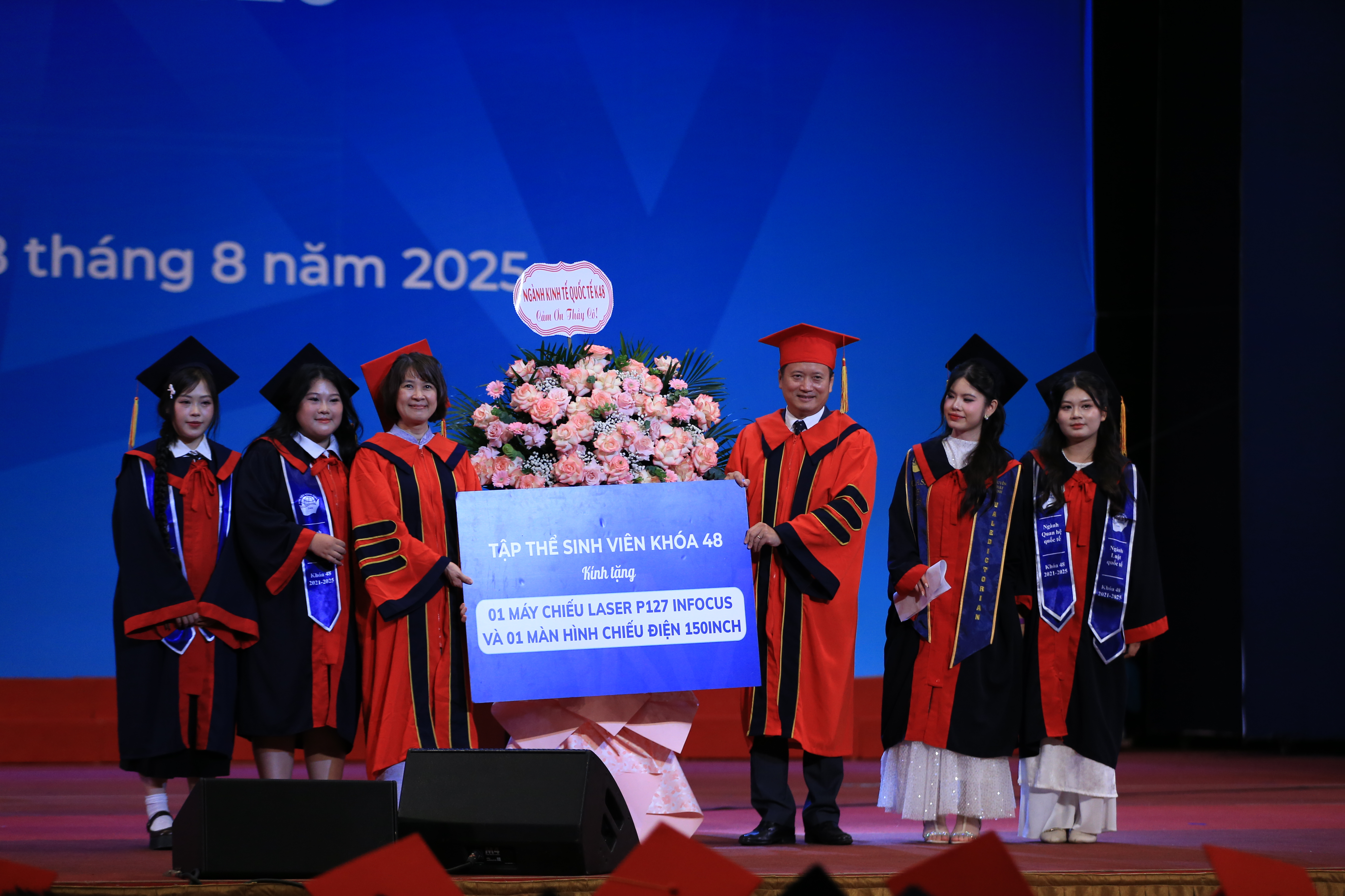 Đại diện sinh viên Khóa 48 đã trao tặng một chiếc máy chiếu cùng màn hình LED để bày tỏ lòng tri ân tới Học viện Ngoại giao. Món quà ý nghĩa này cũng là tình cảm của các anh chị khóa trước dành cho các em khóa sau và thay cho lời chúc Học viện Ngoại giao ngày càng phát triển vững mạnh, tiếp tục đào tạo nên nhiều thế hệ sinh viên xuất sắc, giữ gìn và phát huy truyền thống quý báu của DAV.